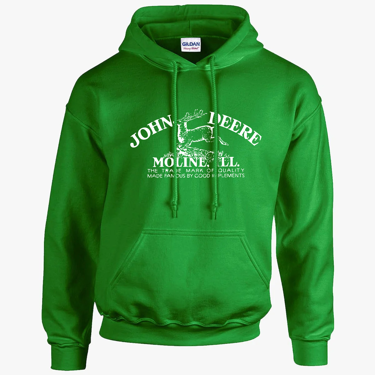 Wo sind die John Deere Besitzer und Liebhaber? Dieses klassisch geschnittene Unisex Kapuzensweatshirt mit durchgehender Kängurutasche ist innen weich angeraut. Die doppelt gelegte Kapuze ist dicker und hält angenehm warm. Das Baumwollmischgewebe aus AirJet-Garn ist geschmeidig und fusselt kaum. Durch das Sanforisierverfahren bleibt es in Form und läuft beim Waschen nicht ein. Keine störenden Seitennähte.
